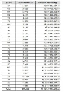 Foram notificados 738.605 devedores, que respondem por dívidas no total de R$21,5 bilhões.